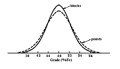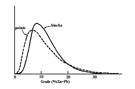 The application of statistical methods to ore reserve problems was first attempted some 30 years ago in South Africa. The problem was that of predicting the grades within an area to be mined from a limited number of peripheral samples in development drives in the gold mines. Gold values are notoriously erratic, and when plotted in the form of a histogram show a highly skewed distribution with a very long tail into the rich grades. Normal (Gaussian) statistical theory will not handle such distributions unless a transformation is applied first. H. S. Sichel applied a log-normal distribution to the gold grades and achieved encouraging results. He then published formulae and tables to enable accurate calculation of local averages for log-normal variables, and also confidence limits on those local averages. Three major drawbacks exist in the application of Sichel's 't' estimator. The 'background' probability distribution must be log-normal. The samples must be independent. There is no consideration taken of the position of the samples -- all are equally important. However, the technique proved very useful in the gold mines, especially since some measure of the reliability of the estimator was provided. It also laid the base for further statistical work by providing the conceptual framework necessary, i.e., by assuming that the sample values came from some probability distribution. At this stage, it was assumed that all the samples (in a given area) came from the same probability distribution -- a log-normal one -- and this assumption is known in ordinary statistics as 'stationarity'.