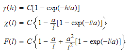 There are many other possible models of semi-variograms, but only a few are commonly used. One other model with a sill which seems to have found some application is the exponential model. This is described by: