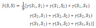 | average value of the semi-variogram between two specified 'areas' | |