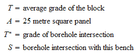 | T | unknown grade of the area to be estimated |