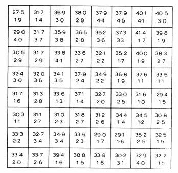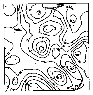 Subsequent to this work attempts were made to incorporate position and spatial relationships into the estimation procedure. Two things seemed sensible: there should be 'rich' areas and 'poor' areas within a deposit; and there should be some sort of relationship between one area and the next. These were tackled in the 1950s and early 1960s by the introduction of Trend Surface Analysis. In South Africa, trends were picked out by forming a 'rolling mean' which produced a smoothed map so that high and low areas could be distinguished. In the United States a 'Polynomial Trend Surface' analysis was propounded which used a statistical technique to fit a mathematical equation to describe the trend. Both methods have one thing in common -- the basic assumptions about the statistical characteristics of the deposit. These assumptions have been extended from the 'stationarity' one, by stating that the sample value is expected to vary from area to area in the deposit. Some areas are expected to be rich, some to be poor. This expectation can be expressed as a reasonably smooth variation, either by a smoothed map or a relatively simple equation. Round about this trend there is expected to be random variation. That is, the value at any point in the deposit is supposed to comprise (i) a 'fixed' component of the trend (which is probably unknown), and (ii) a random variable following one specific distribution. Thus the stationarity has been shifted one step; the expected grade may vary slowly, but the random component is 'stationary'. We have also dropped the log-normality assumption. This approach is quite useful for an overview of the deposit, but, except in heavily sampled areas like the gold mines, is not really useful for local estimation.